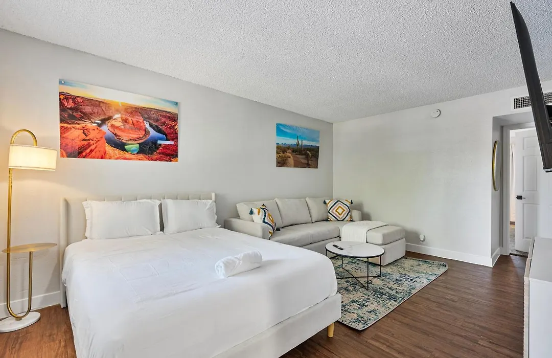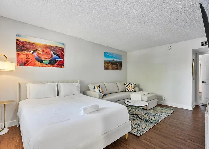 This 1-bedroom apartment is 1.5 miles from the Desert Rio Salado River Park and Phoenix Sky Harbor International airport is 15 minutes’ drive away. You can also reach Old Town Scottsdale, which is approximately 10 minutes away by car.